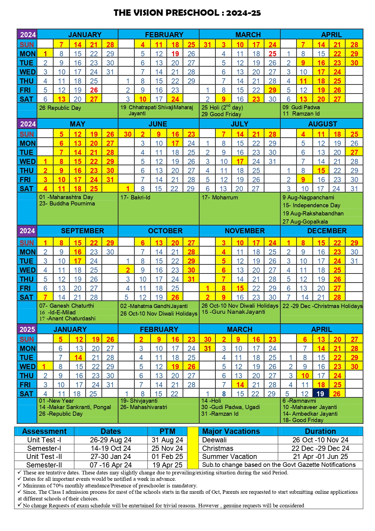 Plan for Success: Vision Preschool – Your Guide to Academic Events and Important Dates.